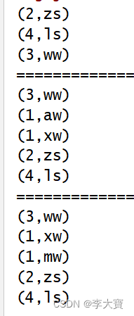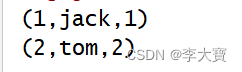 - writeAsCsv():将元组以逗号分隔写入文件中,行及字段之间的分隔是可配置的,每个字段的值来自对象 的toString()方法