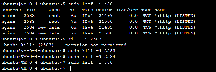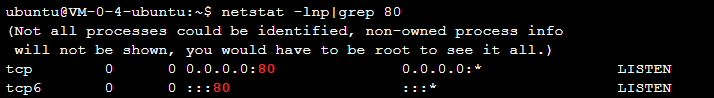 netstat -tln 查看所有端口的使用情况,netstat -tln | grep 80 只查看80端口的使用情况