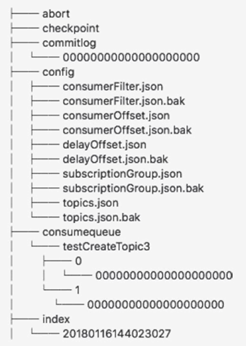 - config文件夹下的topics.json存储每个topic的读写队列数、权限、是否顺序等信息; consumerFilter.json存储消息的过滤的相关信息;consumerOffset.json存储每个消费者Consumer在每个topic上对于该topic的consumequeue队列的消费进度;delayOffset.json存储对于延迟主题SCHEDULE_TOPIC_XXXX的每个consumequeue队列的消费进度;subscriptionGroup.json存储每个消费者Consumer的订阅信息。