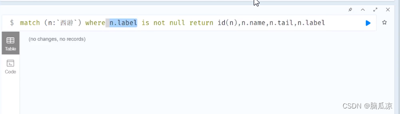 可以看到这里是找出西游中,节点的label属性不是null的显示出来 ,可以看到没有对吧,