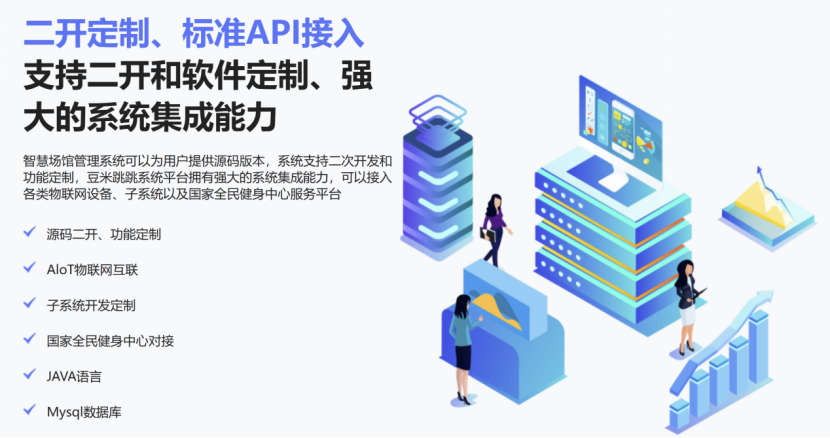 豆米跳跳智慧场馆系统是一款使用Java语言开发的专业智慧体育场馆运营平台。系统面向各种体育相关的多业态智慧空间,深度覆盖运动前、中、后的的完整运营流程。通过软硬件一体化解决方案,实现预约、票务、会员管理、课程培训、赛事管理等核心业务的数字化升级与硬件智能化管控。