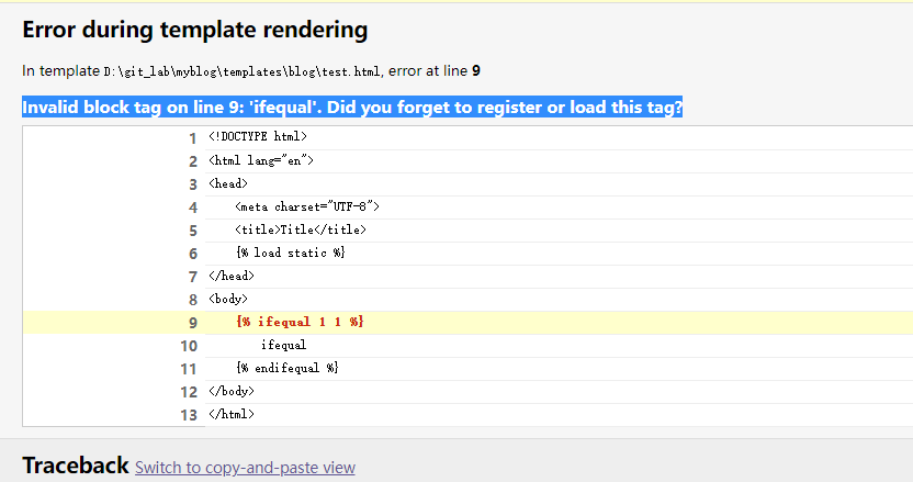 当你拼错标签名称时,Django 会抛出“你忘记注册或加载这个标签了吗”错误。这是 Django 开发人员在尝试使用内置和自定义模板标签时犯的另一个常见错误。Django 总是会抛出异常,因为它无法从顶部加载的库中找到拼写错误的标签名称。