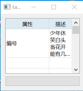点击窗体的按钮后,表格中出现“少年休笑白头翁花开能有几日红”,且文字根据列宽度换行。行高度也随之增加。