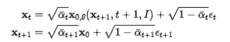 其中, x0theta 是使用金标准计算的上一个时间步的预测分割掩码,xt 和 xt+1 是两个独立的采样噪声。梯度停止应用于 xt+1 以防止通过回收的噪声掩码进行反向传播。αt 是超参数。第一个方程使用先前的预测和当前噪声计算 xt,而第二个方程使用金标准和下一个噪声计算 xt+1。