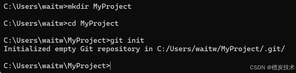 新建用:mkdir 文件名(有空格)下一行写:cd 文件名 第二行表示导航到刚刚新建好的文件夹中。然后我们需要在里面新建我们的本地仓库:git init 接着按下回车就会发现出来了Initialized empty Git repository in……表明这时已经帮我们初始化好了一个本地仓库,当我们在谈论版本控制和提交历史时我们可以直接用刚刚新建的文件夹,说我刚刚新建了一个本地仓库叫:Mydiary,如果我们在谈论对文件的修改和编辑开发的时候就可以说我的工作目录是Mydiary,完全没问题,虽然它们俩可以用同一个名称,但是功能是完全不一样的。工作目录是指我们正在进行开发和编辑的对象,通常是代码、如 `.cpp`、`.py`、`.js`、`.html`、`.css` 等,或者是其他的,这取决于你自己要存放进去并且要借助git来版本管理的文件是什么类型。