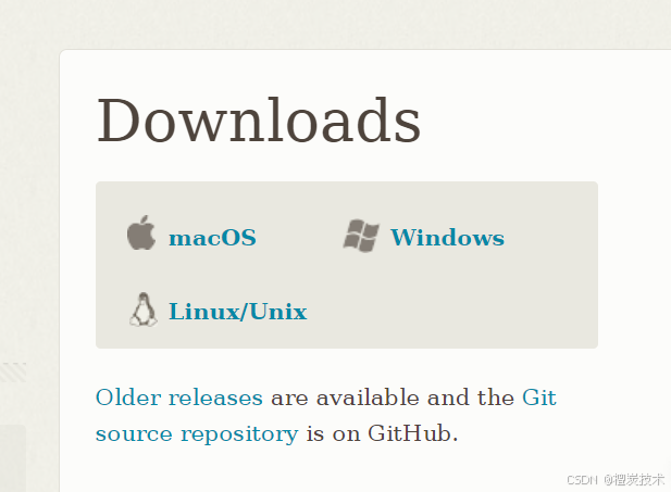 这里是git官网 https://git-scm.com/ 然后点击Downloads,如果你是Windows那就下载相对应的版本,其他的如Mac也是一样。