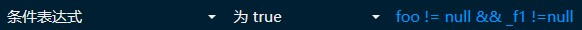 例如我当前方法有一个局部变量 foo 和一个字段 _f1 我需要在这两个都不为空的时候进入断点,此时可以添加一下表达式