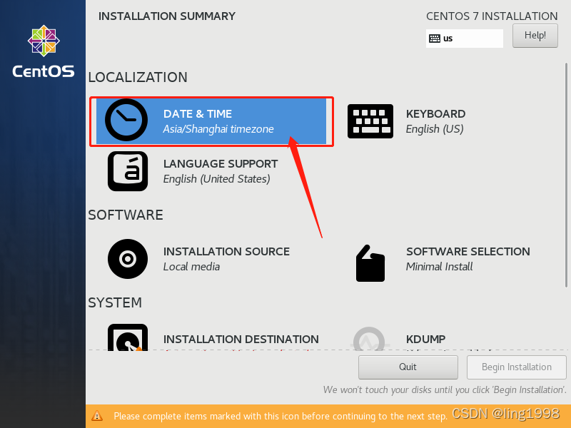 在正常安装过程中,安装到“INSTALLATION SUMMARY”时,设置如下: