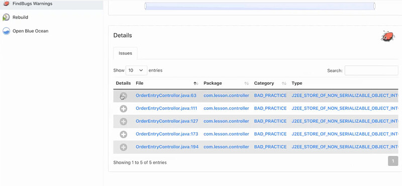 - 点击每一条问题信息左边的加号都能进入到具体哪行代码报出了问题,出问题的具体信息,就能根据提示的信息去分析可能的出错,与开发人员进行沟通解决;多次构建操作后就能看到趋势图的展示。