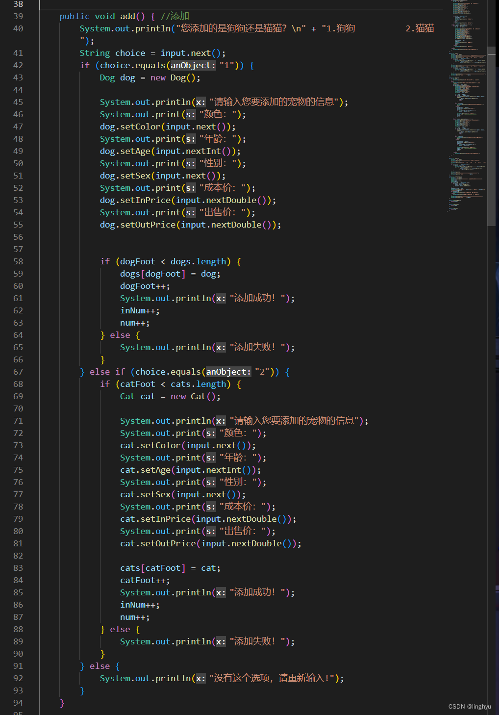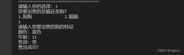 System.out.println("您要出售的是猫还是狗?\n" + "1.狗狗 2.猫猫");