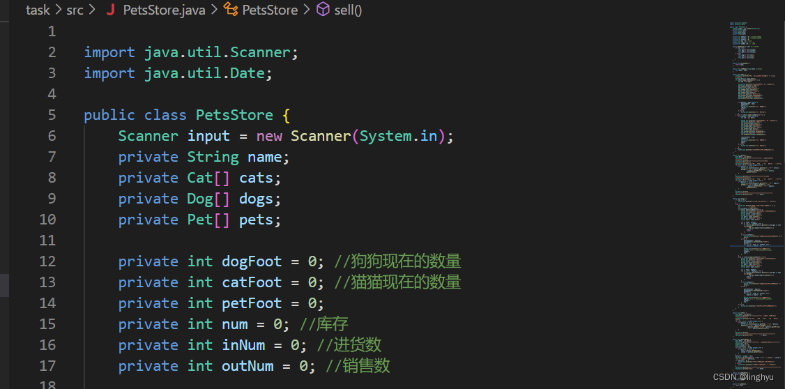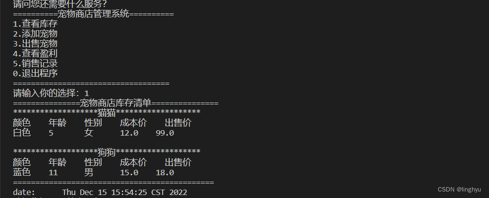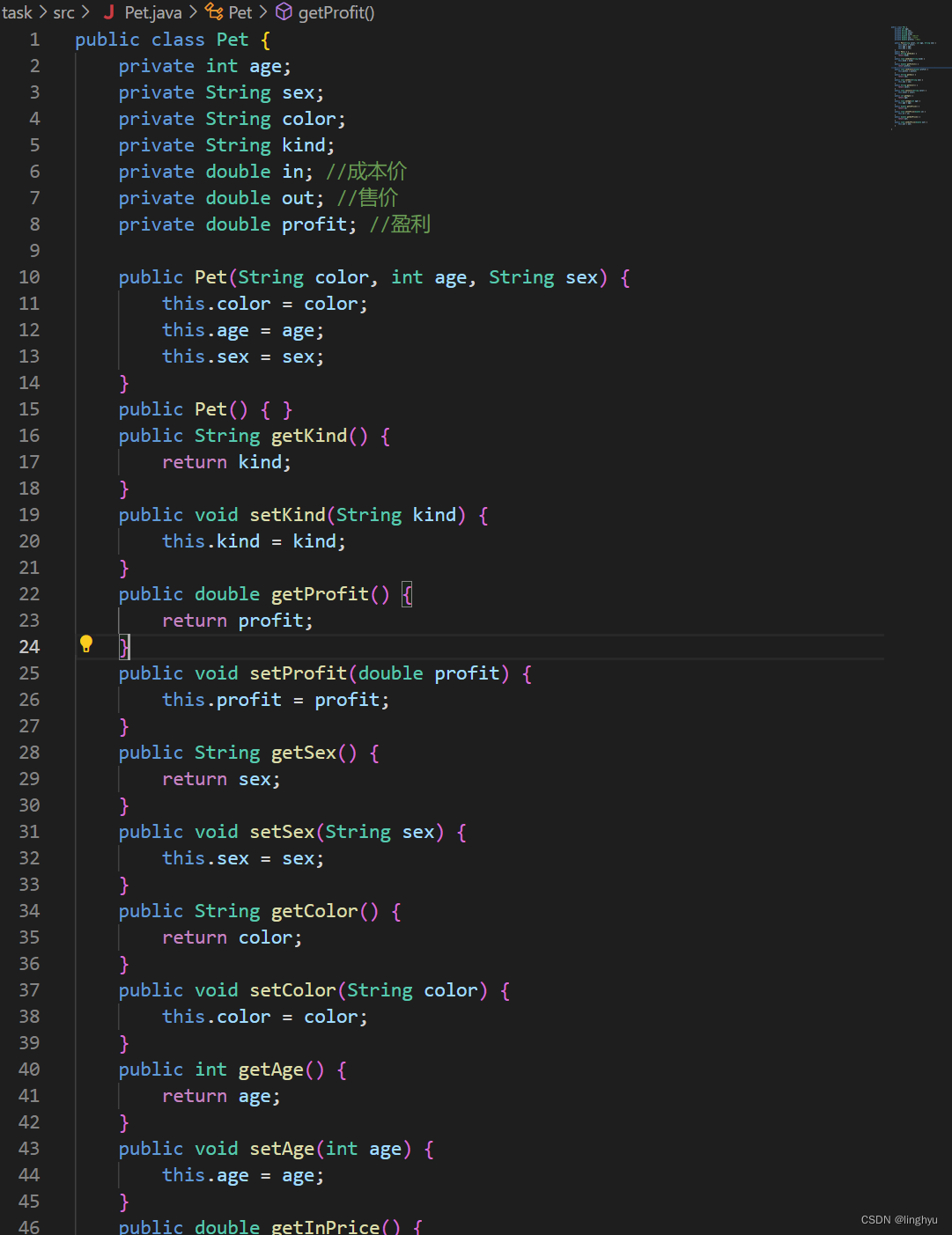 先定义各种属性,年龄、性别、颜色、类型、成本价、售价、盈利,以及基本的接口,以下是部分代码截图: