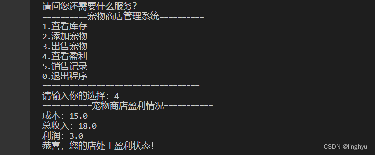 System.out.println("很遗憾,您的店处于亏损状况!");