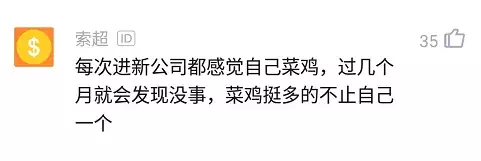 还有的则表示:想开点,我每次进新公司的时候都感觉自己是个菜鸡,但过几个月就会发现没啥事,菜鸡挺多的不只自己一个