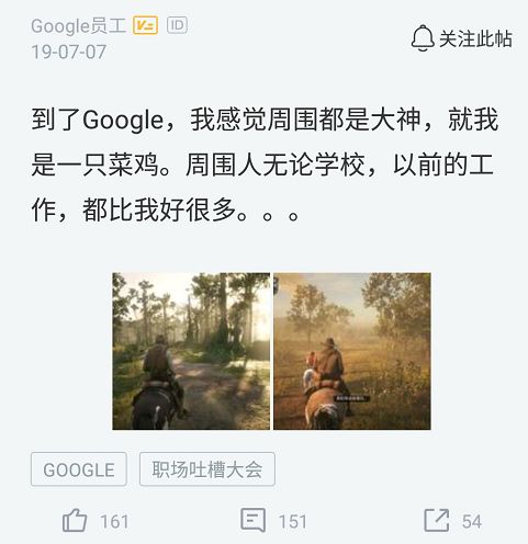 这不,有位网友就感叹道自己到了Google之后,感觉周围都是大神,就我是一只菜鸡,周围的同事无论学校还有以前的工作,都比我好很多,..