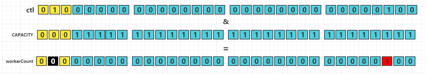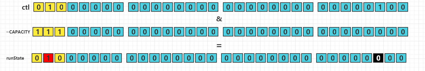 要获取高位的runState则使用ctl的值c和容量(也就是2^29-1)取反做与运算;
