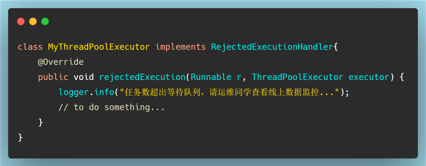 当然我们也可以自定义拒绝策略,比如我们在拒绝策略中做一些日志记录等自定义的需求。