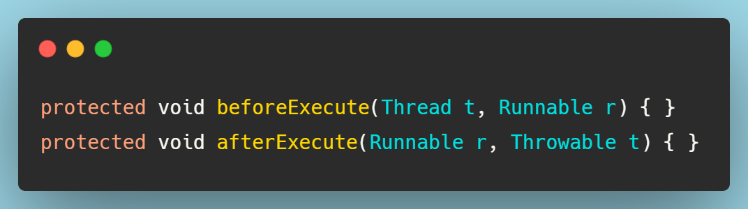 在线程池执行任务的runWorker(Worker)方法中我们发现,会在任务执行前和执行后有两个方法。