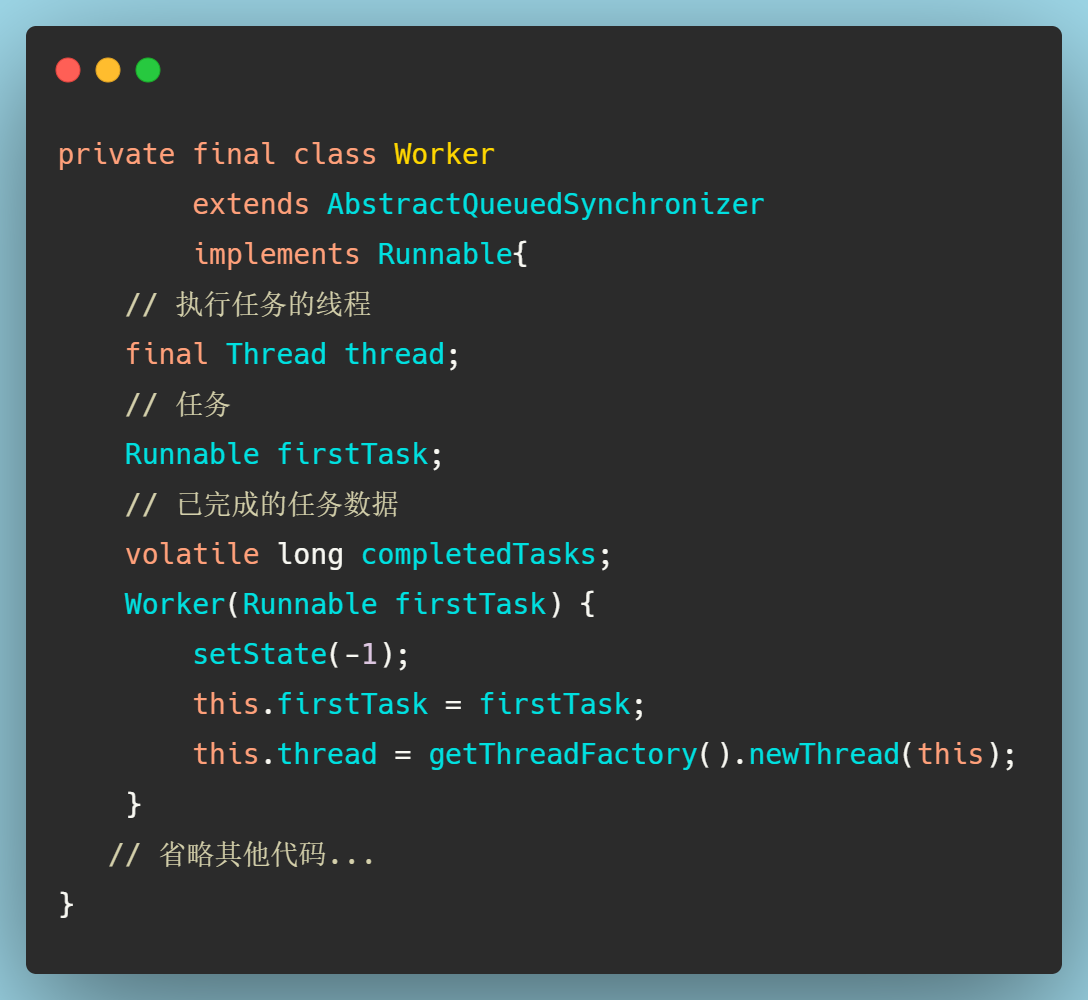 有了这个整体之后,我们再进一步看看addWorker()方法,在这之前需要先了解Worker类的结构。