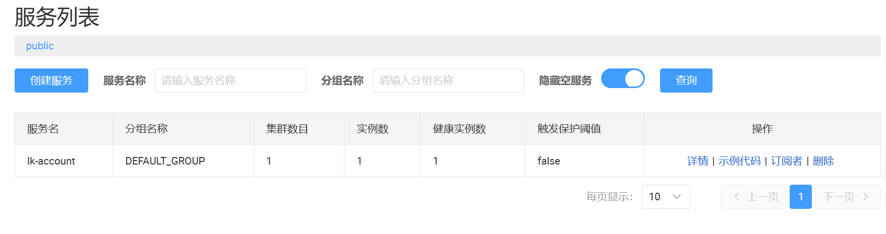 启动服务,在Nacos的服务列表中即可看到,完成注册的服务信息