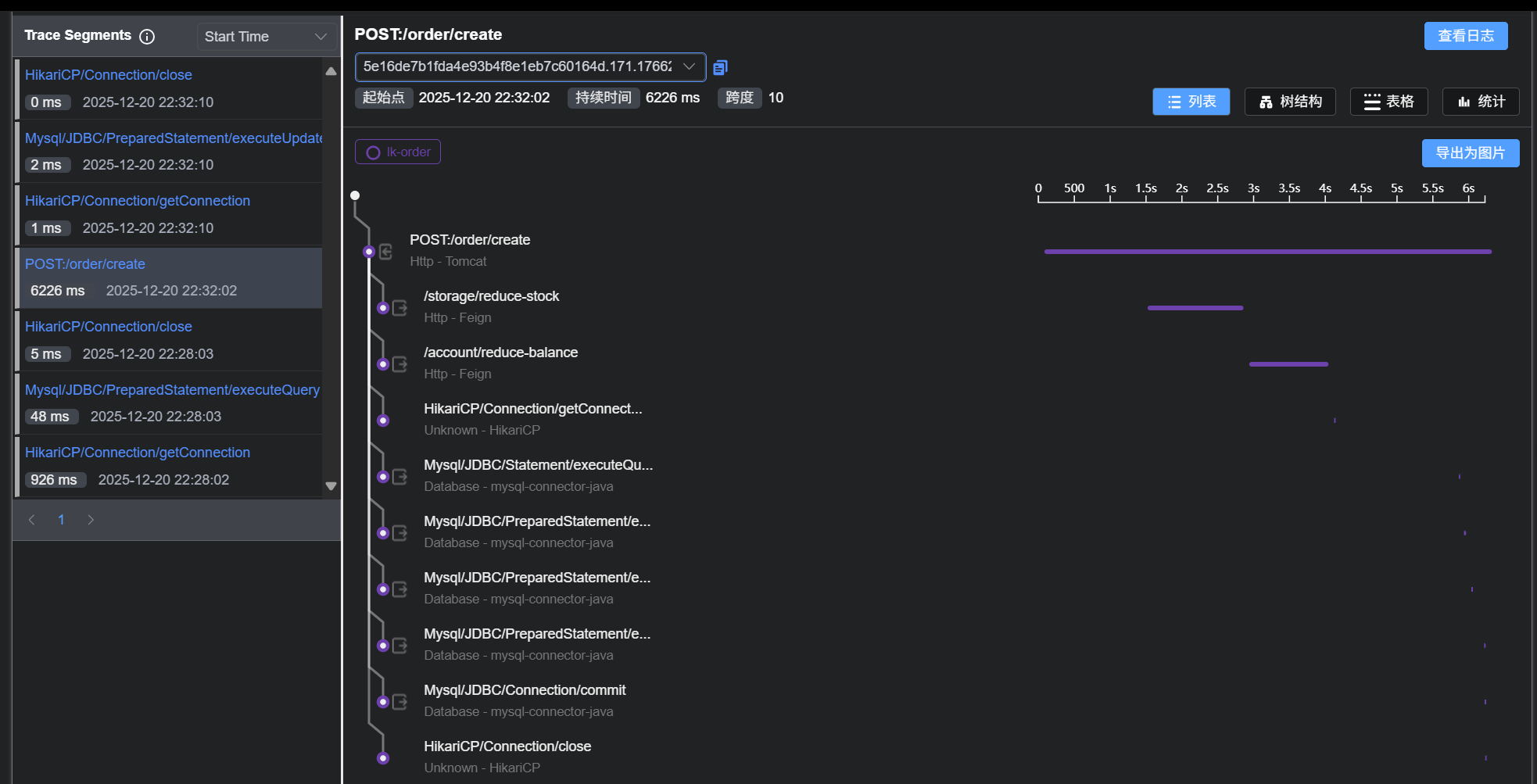 订单服务重启,然后通过localhost:8080/order访问界面,调用订单接口,在查看Skywalking的UI界面是否有调用链路