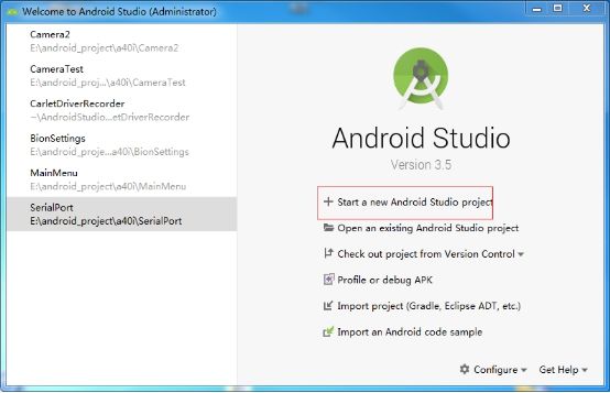 步骤1:打开Android Studio,Start a new Android Studio project;