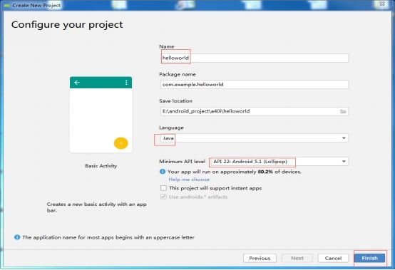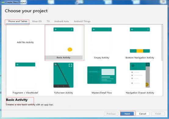 步骤2:创建工程,选择Phone and Tablet
