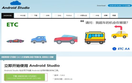 步骤1:访问网站: http://www.android-studio.org 在页面中点击 [下载ANDROID STUDIO];