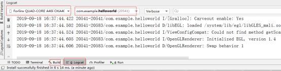 点击[Logcat],选择com.example.helloworld