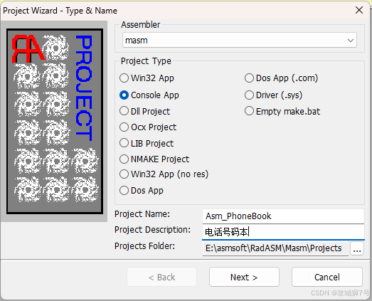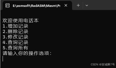 本项目实现一个可以增删改查的电话本,电话号码数据非永久保存,关闭程序后数据会丢失,后续可以自行实现永久保存到文本或数据库。实现过程中我们将熟悉汇编代码开发,能够在 OD中看懂反汇编代码,知道如何通过 OD 调试自己写的程序。