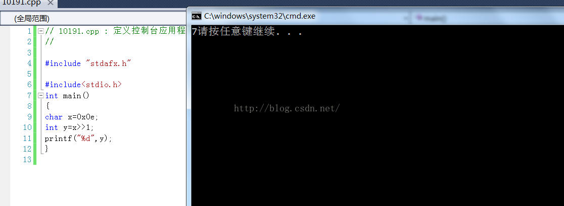 那么x>>1=0000 0111=7