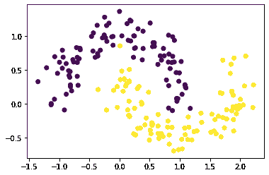 plt.scatter(X[:, 0], X[:, 1], c=y)