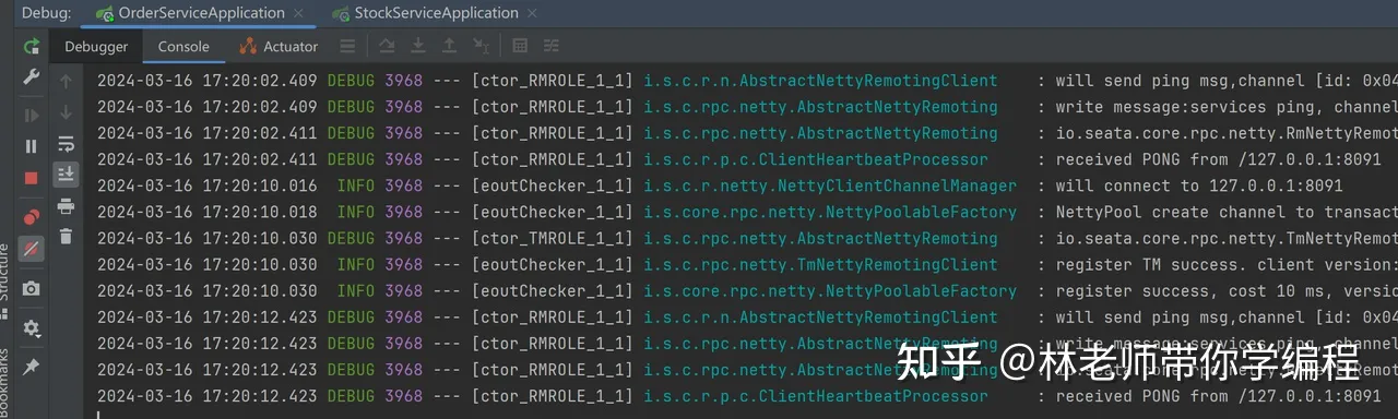 分别启动order和stock服务,如下所示就代表启动成功了。