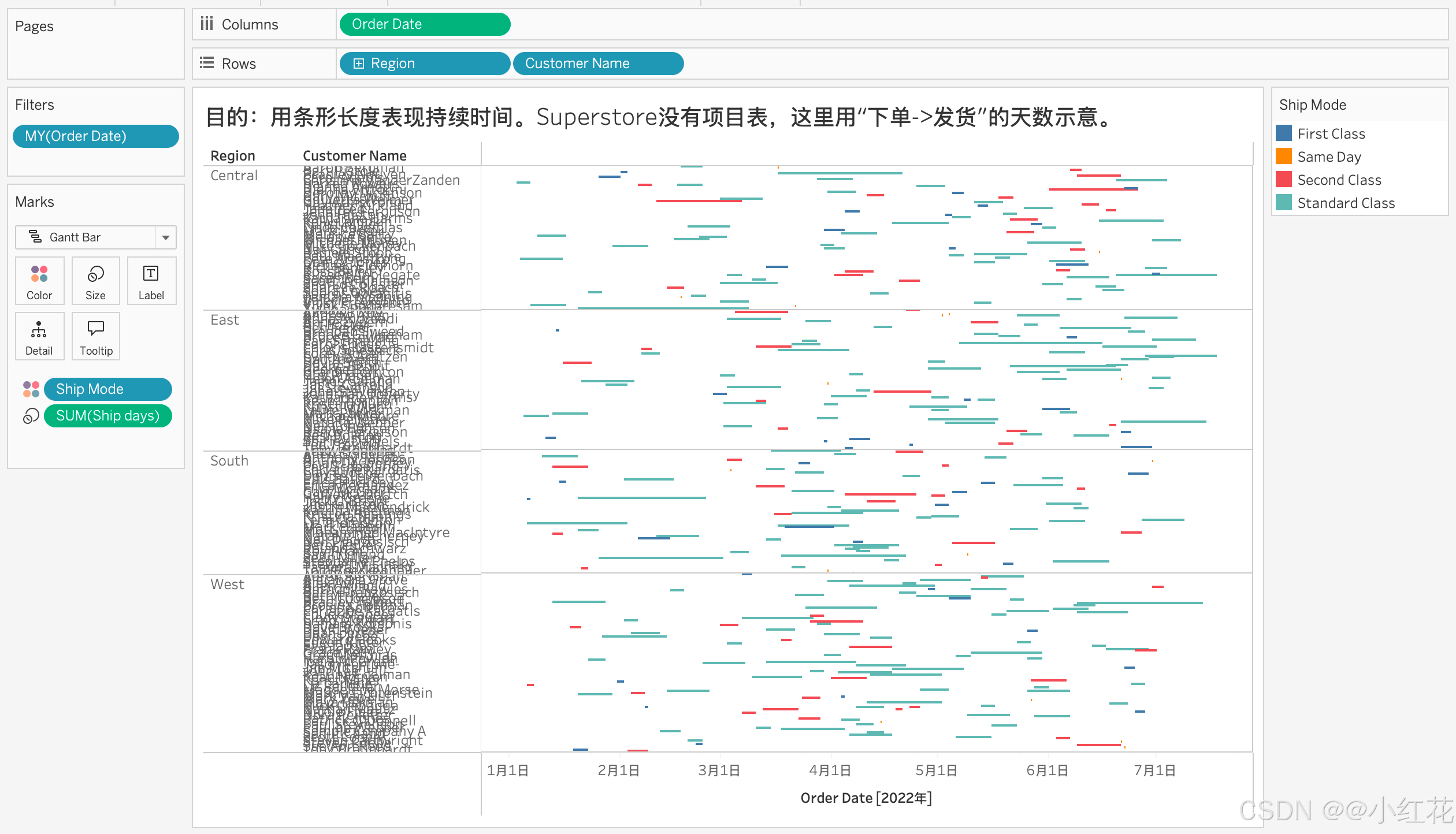 分时间:将 Order Date 拖到 Pages,做时间动画。