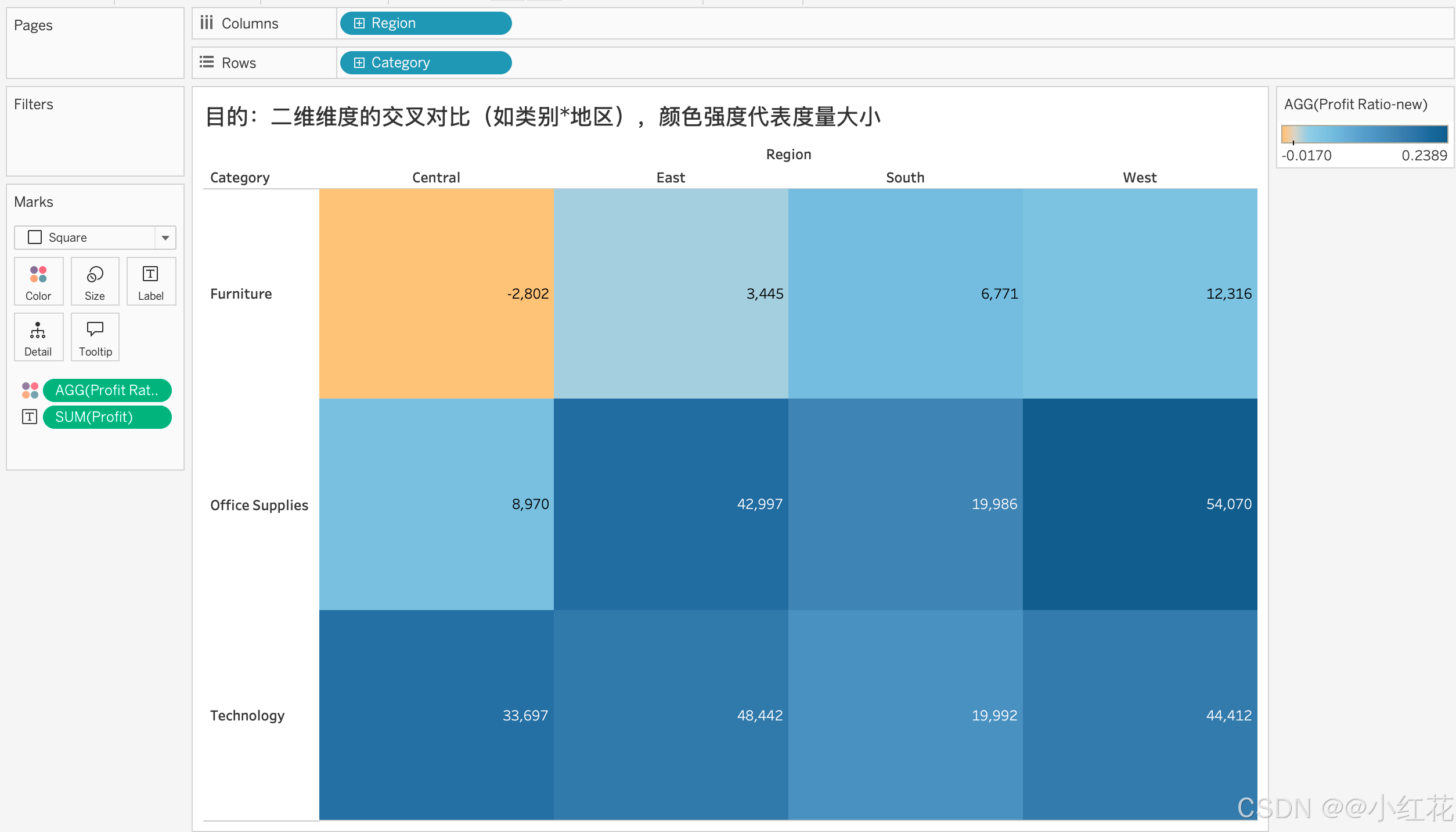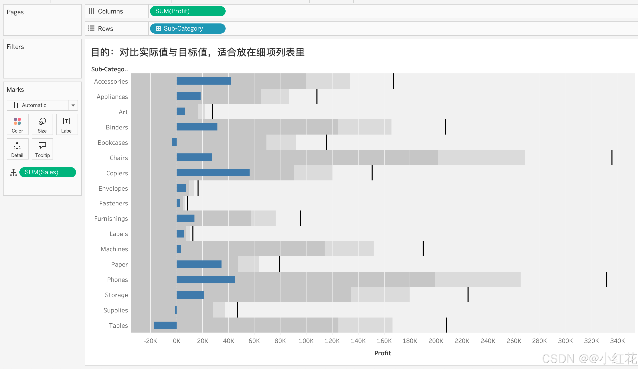 颜色区分盈利与亏损:将 Profit 拖到 Color;