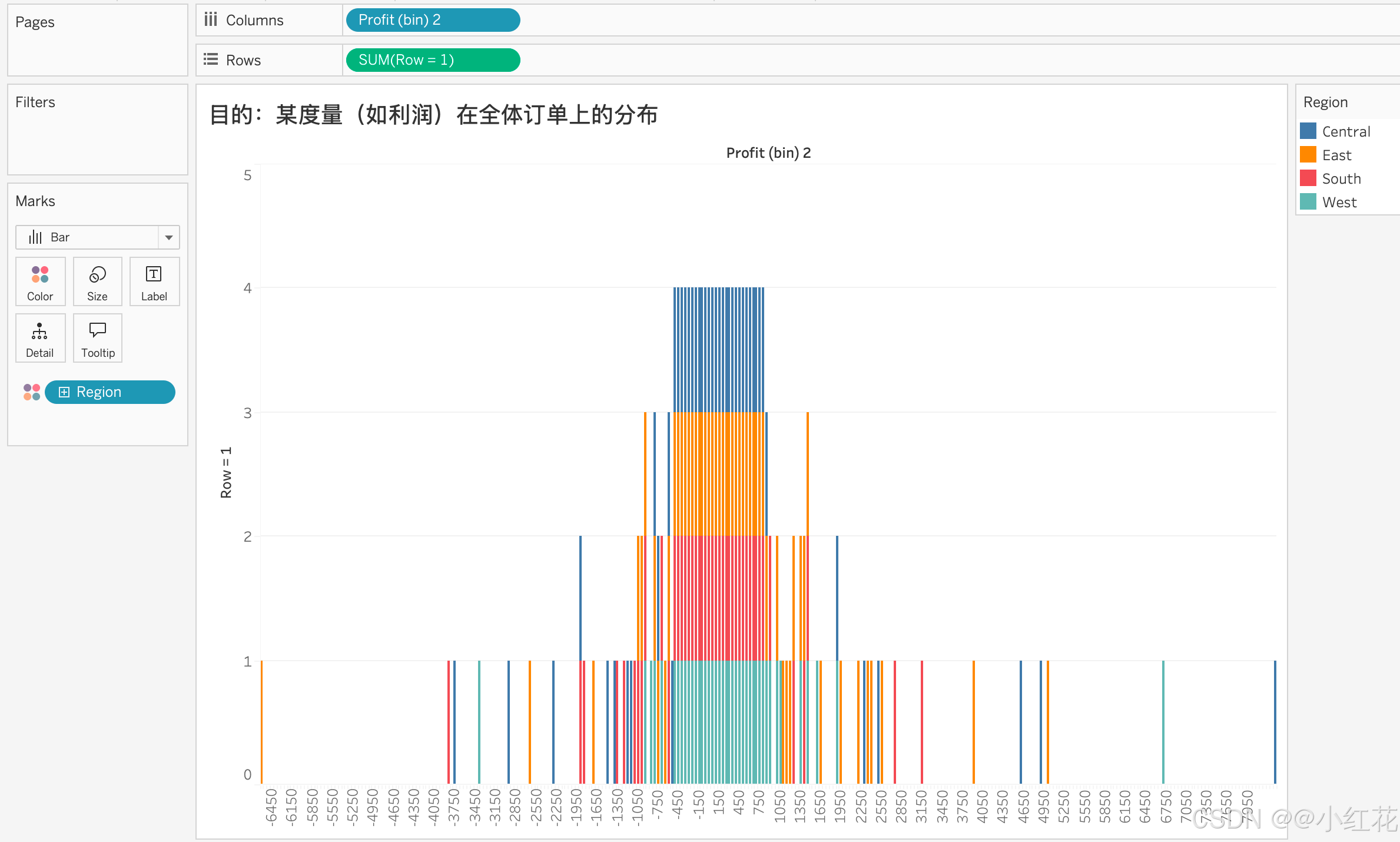 在数据窗格右击 Profit → Create › Bins…(建议 Bin 大小 50 或 100,可试)。