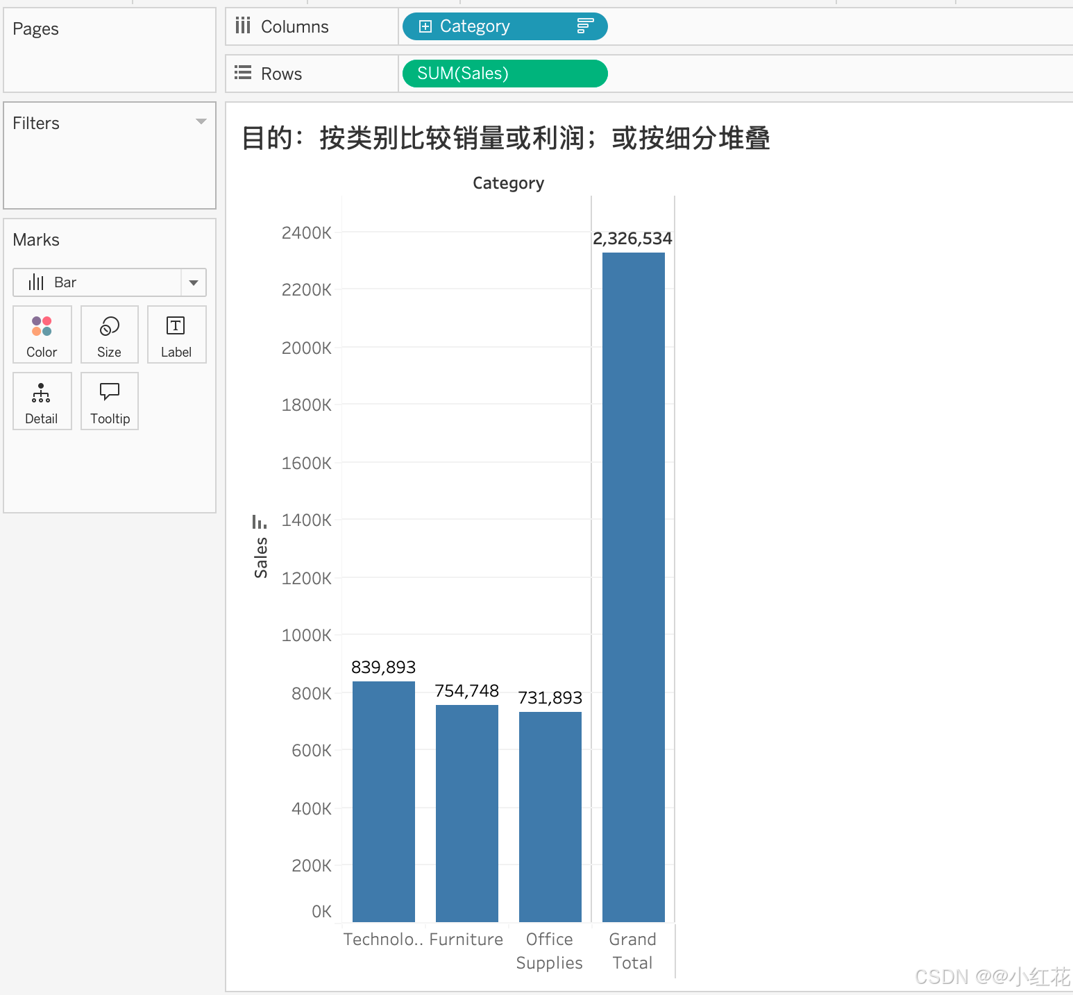 将 Sales 拖到 Rows。