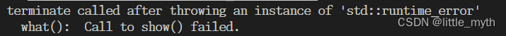 erminate called after throwing an instance of 'std::runtime_error' what(): Call to show() failed.
