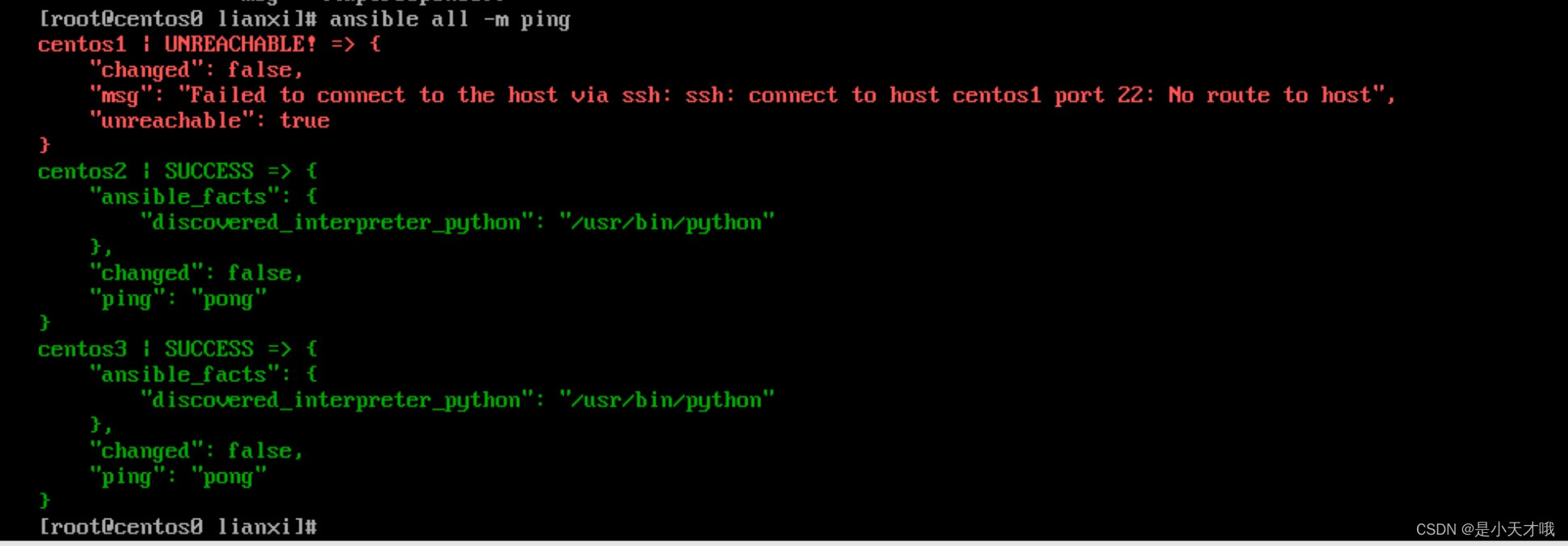 当一切确定好了后,使用ansible all -m ping,来确定是否连接到了收管主机