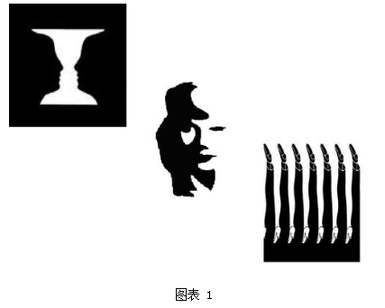 知觉的选择性是利用知觉对象与背景之间的关系,在一定时间内,人们只能感受到引起注意的少数刺激,而其他事物则退到“后面”。在一定条件下,对象和背景可以相互转换。如下图表1所示: