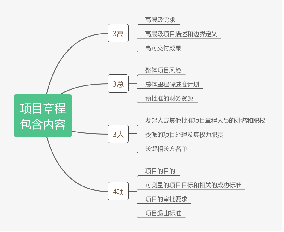 项目章程:记录了关于项目和项目预测交付的产品、服务或成果的高层级信息;确保相关方在总体上就主要可交付成果、里程碑及每个项目参与者的角色和职责达成共识。