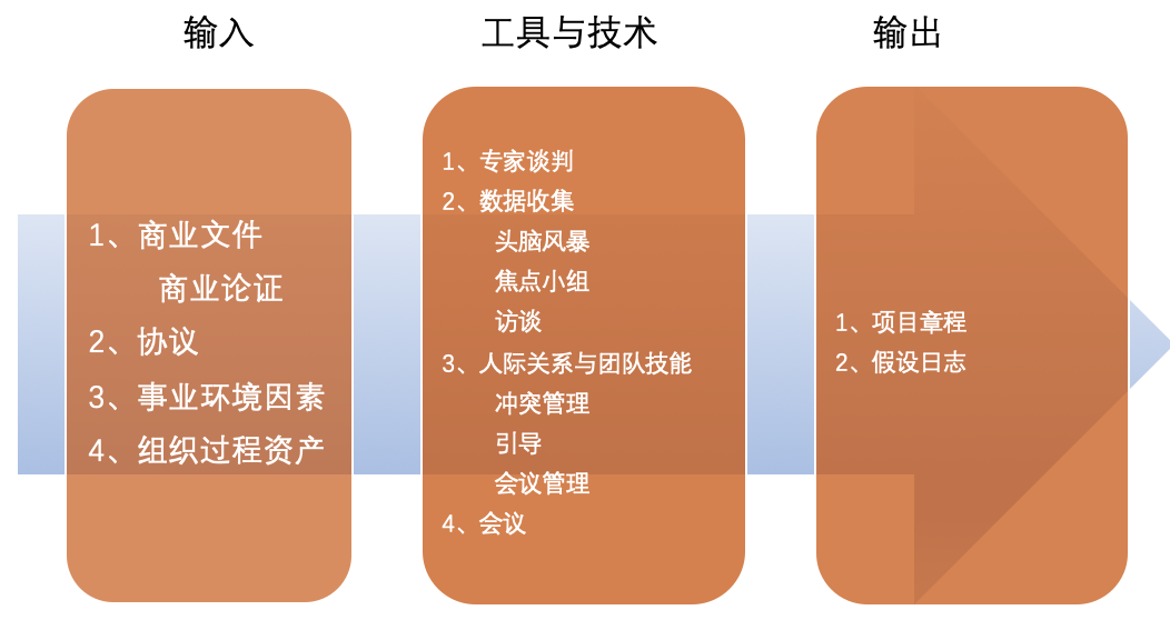 定义:制定项目章程是编写一份正式批准项目并授权项目经理在项目活动中使用组织资源的文件的过程。