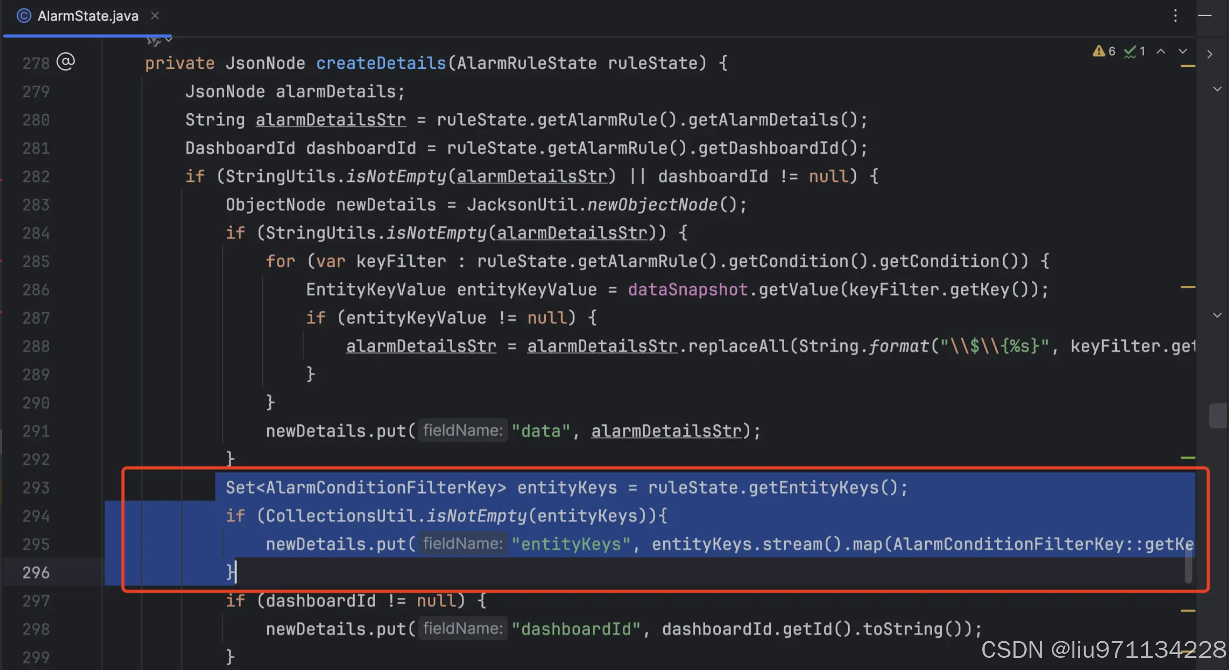 newDetails.put("entityKeys", entityKeys.stream().map(AlarmConditionFilterKey::getKey).collect(Collectors.joining(",")));