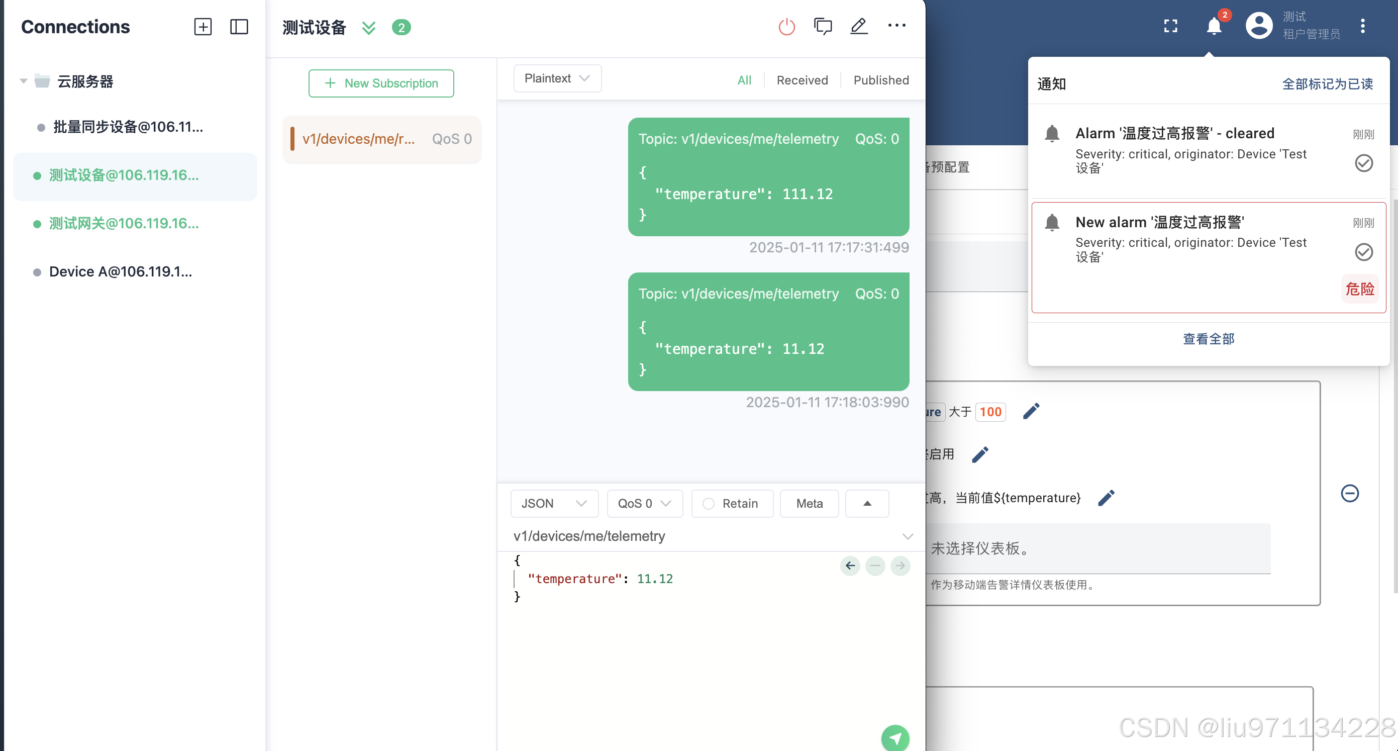 "data": "温度过高,当前值100.12"