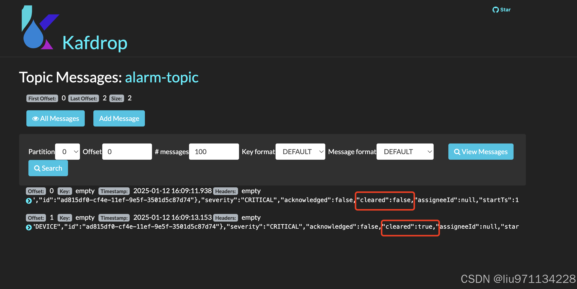 创建报警 根据"cleared": false,区分告警还是销警