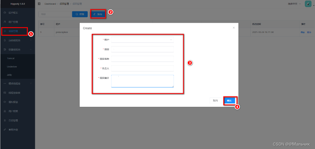 需要在Hippo4j的图形化界面上构建租户&项目
