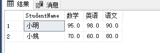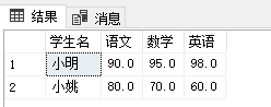 SELECT * FROM TempSubjectResult PIVOT(MAX(StudentGrade) FOR StudentSubject IN([语文],[数学],[英语])) T