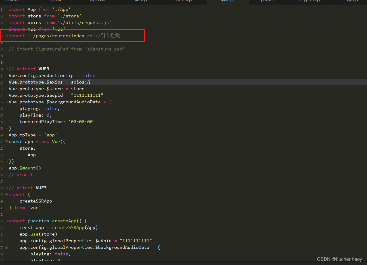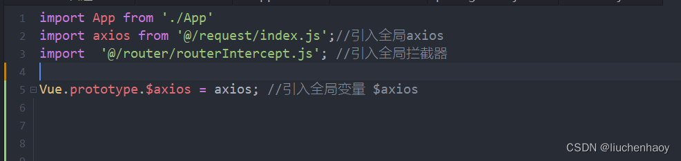 2.在main.js中 添加import axios from './utils/request.js' , (全局引用request.js)