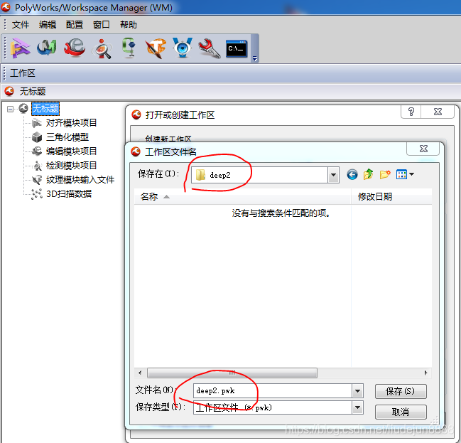 选择已经创建了的空文件夹deep2,并且给工作区命名为deep2,单击保存