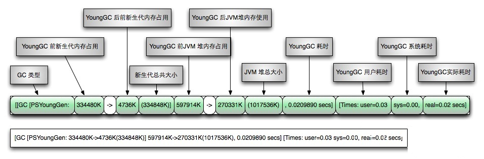 在JDK 8中, -verbose:gc是 -XX:+PrintGC一个别称,日志格式等价与: -XX:+PrintGC。
