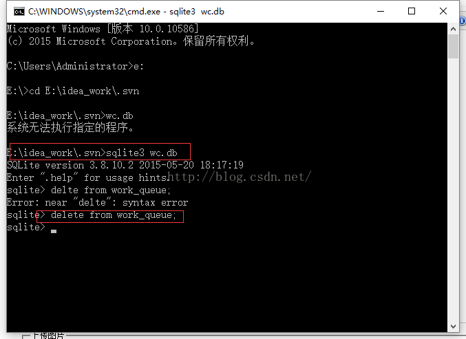 1、cmd指令,进入.svn目录,找到wc.db文件 sqlite 3 打开